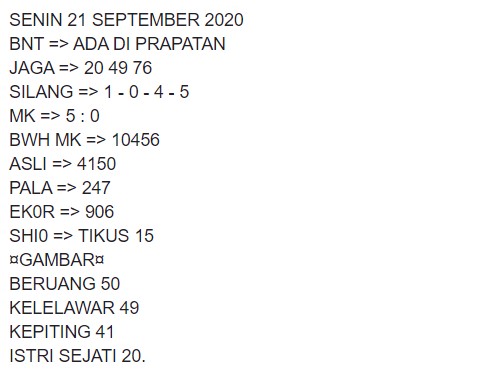 Source: Syair Bd Senin 21 September 2020 Result 3737 Sahh Facebook