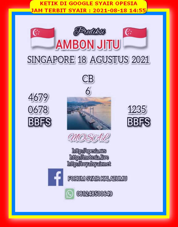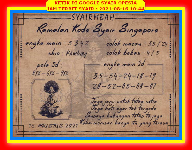 Source: Syair Singapura Hari Ini 18 Agustus 2021 Opesia Official