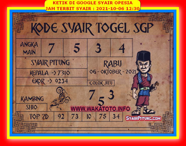Source: Syair Sgp Hari Ini Rabu 6 Oktober 2021 Opesia Official