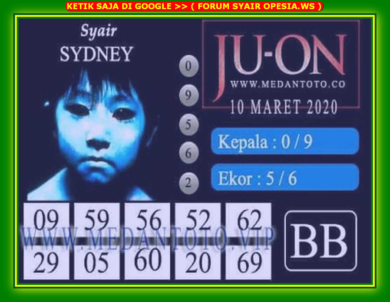 Bocoran Prediksi Syair Sydney 10 maret 2021.